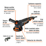 Esmeriladora angular 4-1/2″ 800 W, profesional, Truper